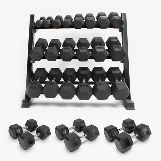 Hex Dumbbell Sets With Rack: 5-25, 5-50 & 5-80 lb