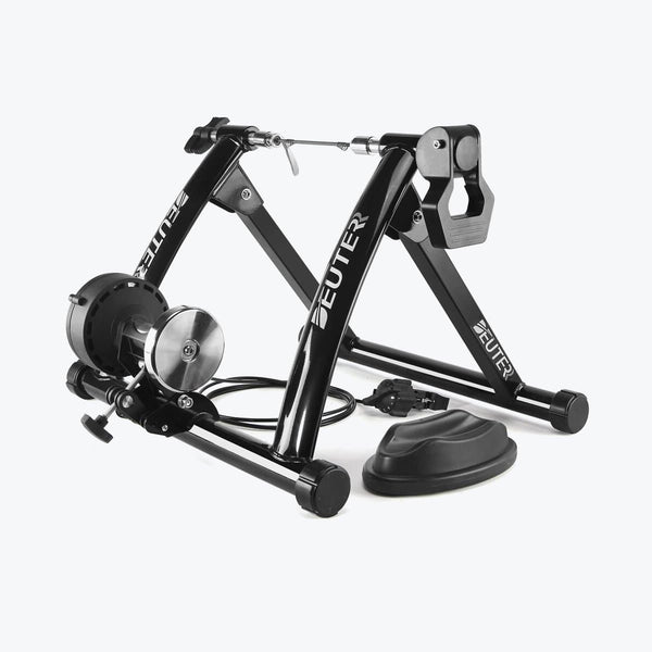 Notre support d'entraînement de vélo déplié forme une structure pyramidale, ce qui améliore considérablement la stabilité de l'ensemble du cadre. Avec son matériau solide et sa structure stable, le home trainer peut supporter une charge allant jusqu'à 330 lb. De plus, tout vélo avec une largeur de pneu de 26'' à 28'' ou des pneus de 700 cc peut être monté sur notre stand. Le home trainer comprend un dispositif drive-by-wire qui vous permet de modifier directement la résistance de votre guidon. Vous pouvez régler la résistance magnétique et basculer entre six niveaux de résistance en quelques secondes. Il y a peu ou pas de bruit sur les roues lors de la conduite. Pour réduire encore plus le bruit du home trainer, vous pouvez utiliser des pneus lisses conçus pour les home trainers ou ajouter un tapis sous la structure.