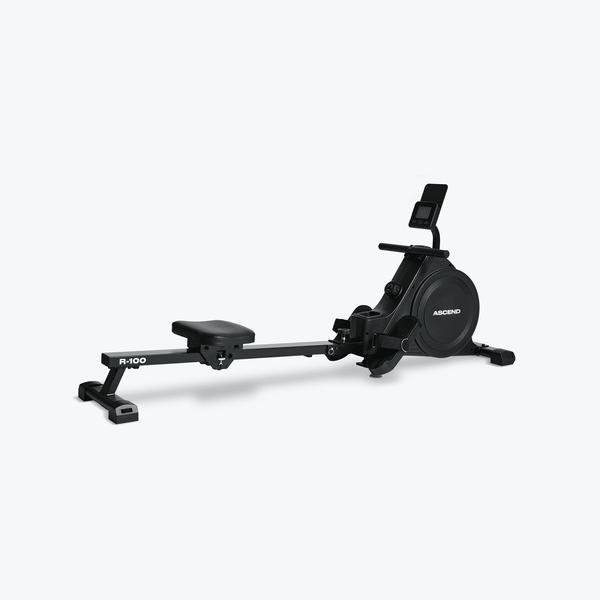 With its 16 levels of intensity, the Ascend R-100 Magnetic rower allows you to go from light, to moderate to competitive level training in seconds. The built-in advanced LCD monitor shows you the intensity of your workout by giving you an overview of your strokes per minute, the duration of your workout, calories burned, and distance rowed. Its solid construction of reinforced steel, wide and adjustable pedals and the comfort of its bench will make the R-100 magnetic rower your favourite piece of training equipment. Through a complete and effective workout, your cardio and muscles will be fully put to the test. Row, strengthen, and take it to the next level.