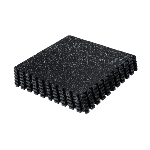These pack of 6 tiles are the perfect solution for a comfortable and durable flooring option. These 24" x 24" tiles are 9/16" thick and feature a unique construction that combines 1/2" EVA foam with 1/16" vulcanized rubber. The result is a tile that provides exceptional shock absorption, making it ideal for high-impact activities like weightlifting and plyometrics. At the same time, the vulcanized rubber adds durability and grip, making it an excellent choice for gym and fitness studio flooring. Each tile covers a total of 4' x 6', providing 24 sqft of coverage. The black tiles are accented with grey specs, creating an understated yet stylish look that will complement any gym or fitness space.