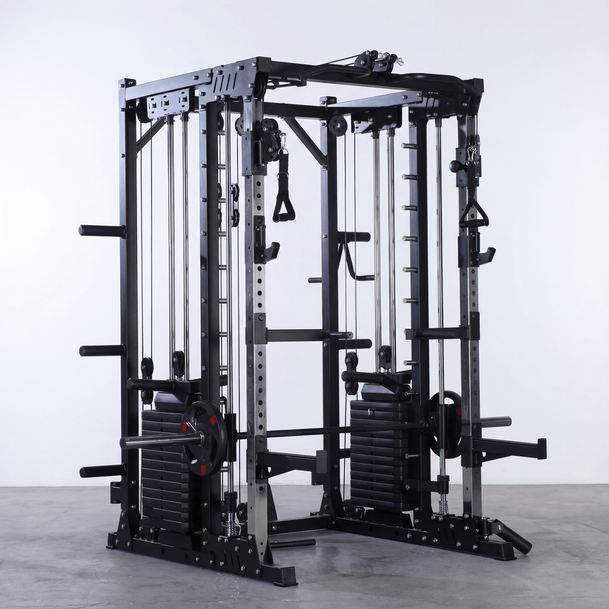 This all-in-one system replaces an entire gym floor. From Smith squats and presses to cable crossovers, pulldowns, rows, dips, and landmine work, the SM-900 gives you every training option you need in a single heavy-duty unit built for garage-ready reliability.