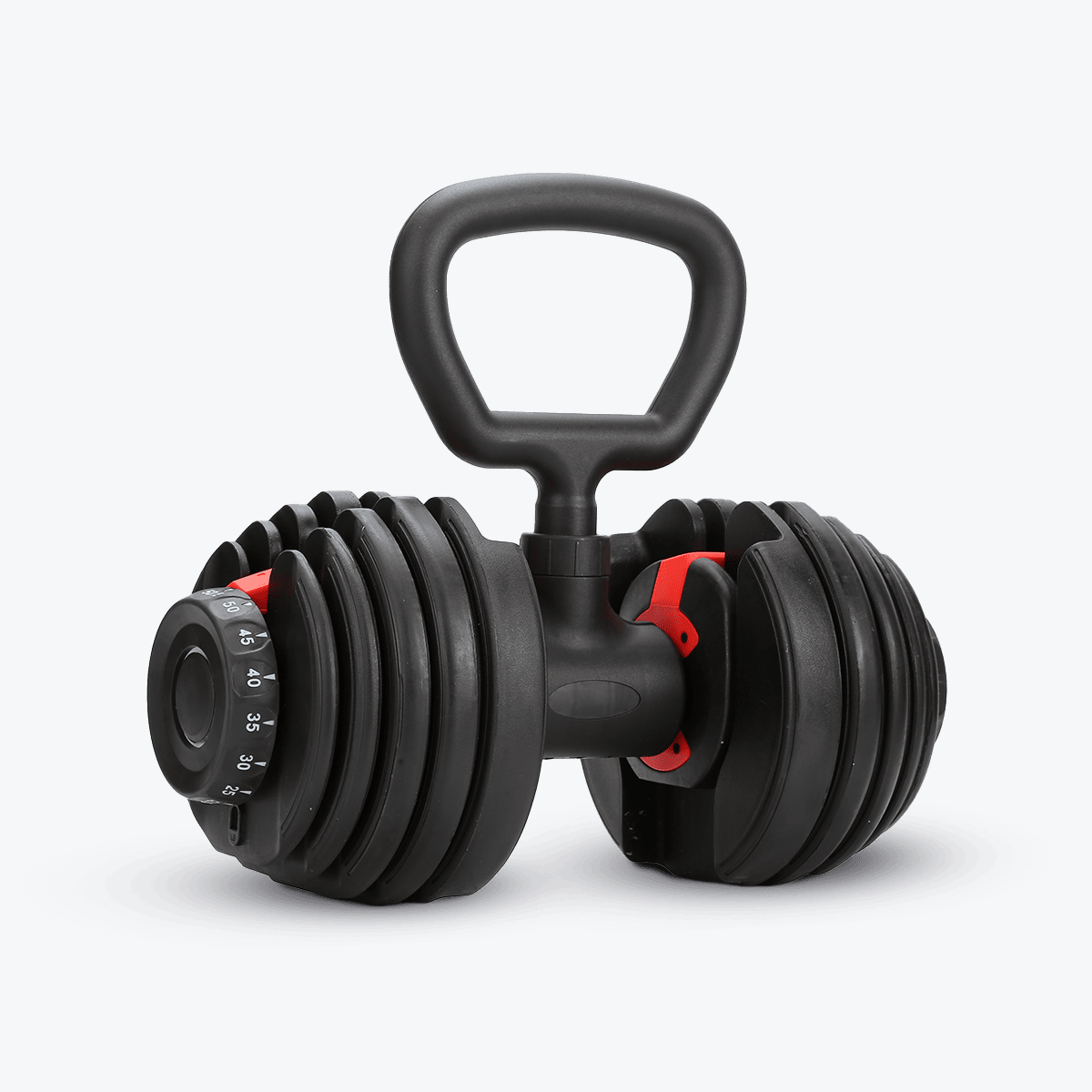 Our Nuo style Dumbbells that go from 5 to 70 or 7.5 to 90 lbs are the revolutionary piece of equipment you've been dreaming of having to power your next work outs. Now with 16 increments to choose from (of about 5 lbs each), you'll be able to do all of your next exercises with ease. With it's simple mechanism and it's refined look, this set of dumbbells will surely find it's place right in your home.