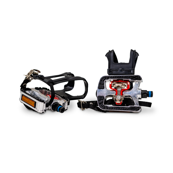 This set of pedals is designed to fit clip-in bike shoes. The pedals have two different sides and can be used both with and without clip-on shoes.