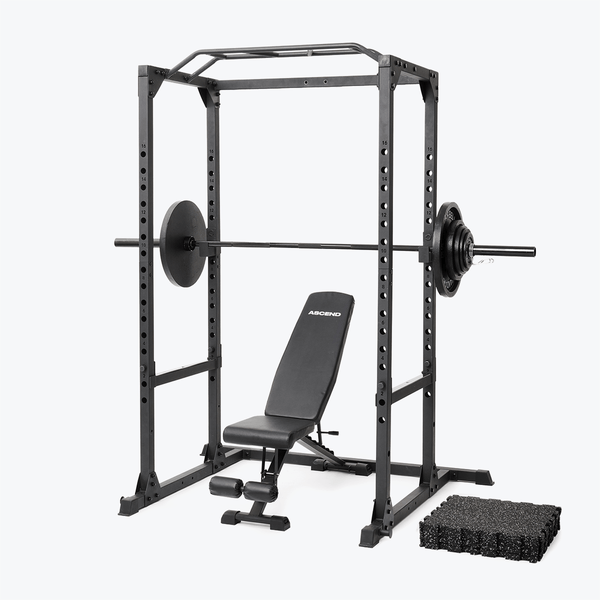 - Ascend Power Cage 3.0 with a 800 lb capacity, ideal for squatting or bench pressing (Height: 211cm, Width: 165cm, Depth: 120cm)